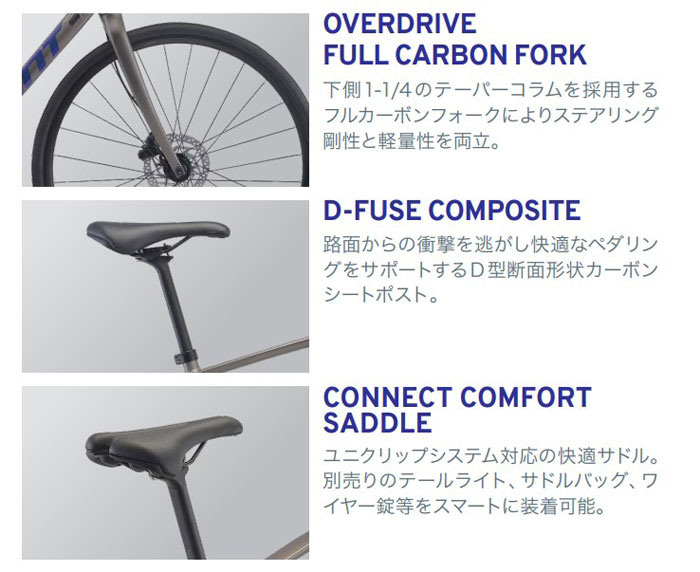 「エスケープRX」のフラッグシップモデル。「アラックスSL」軽量アルミフレーム、フルカーボンフォーク、油圧ディスクブレーキ、2x10のドライブトレインなどのロードバイクを踏襲するスペックと、快適性の高い30Cタイヤや独自のD-FUSEカーボンシートポストによって、高い走行性能と快適性を実現。2026年モデルは、人気のマットチタニウムペイントに、酸化処理を施したチタニウムの色合いを表現したデカールを組み合わせたフラッグシップモデルにふさわしい、特別な存在感を放つグラフィックを採用。
