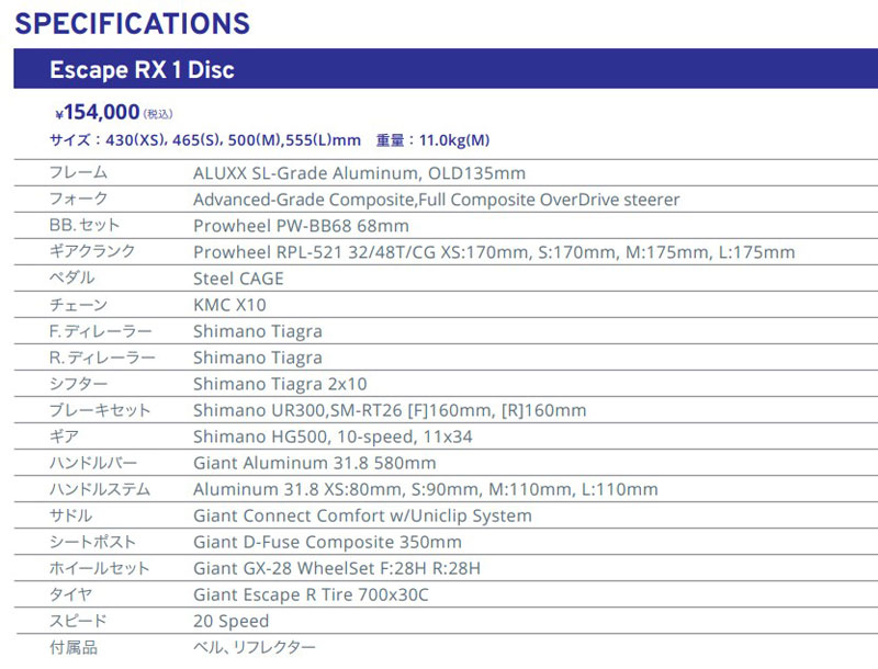 2026 GIANT(ジャイアント) ESCAPE RX1 DISC(エスケープRX1ディスク)