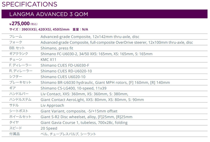 2026 Liv / Langma Advanced 3 QOM (リブ・ランマアドバンスド3コム)