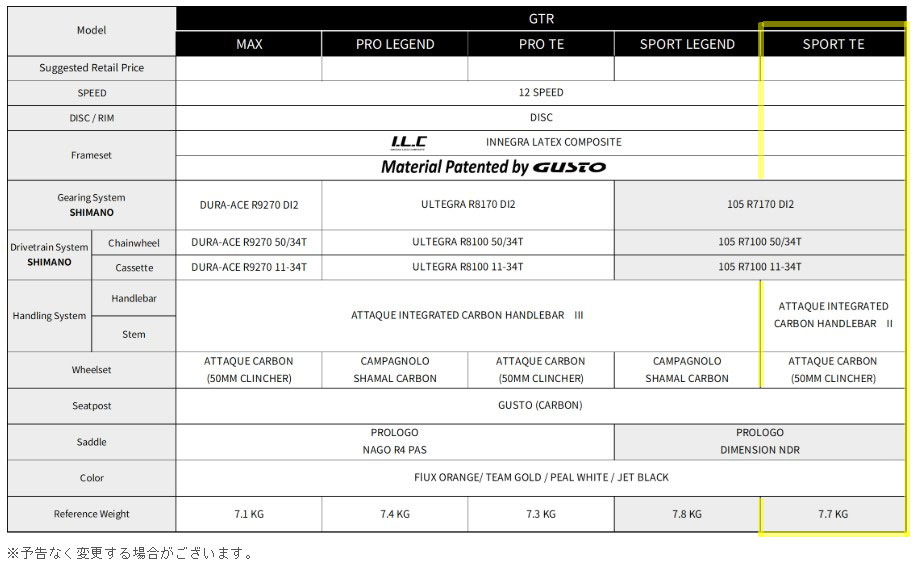 2026 GUSTO / GTR SPORT TE (グスト・GTRスポーツTE)