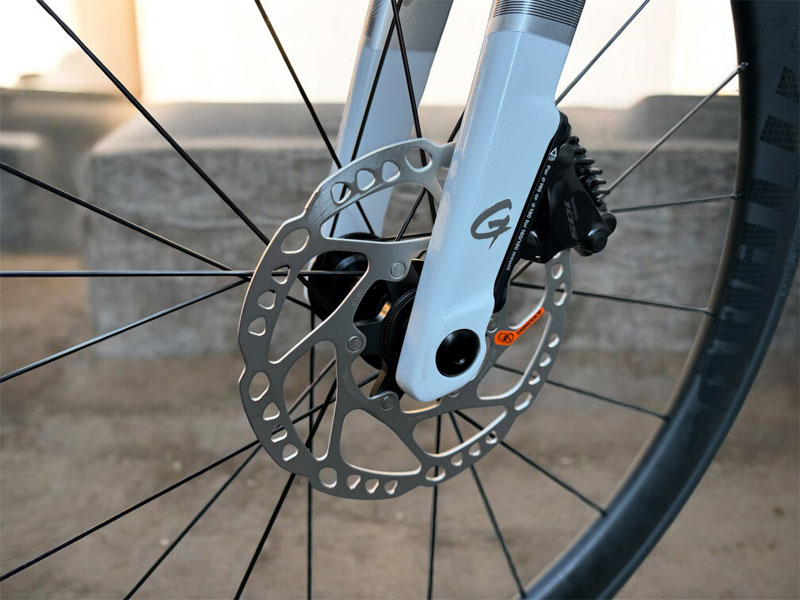 【ワイドなフロントフォーク設計】GTRのフォークはワイド設計を採用し、空力性能・剛性・ディスクブレーキシステムという3大要素を融合。スピード・効率・操作性を両立。 -