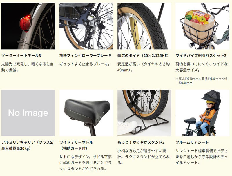 ラクイック(キーを出さずにパッと開錠)・押し歩きもラクラクな押し歩きモード・空気入れのタイミングお知らせ機能・シーンに応じて最適なアシストを行うカルパワーユニット・スタンドを立てると同時にハンドルを簡易固定など、パナソニック独自の機能をフルに搭載した大人気フラッグシップモデルです。