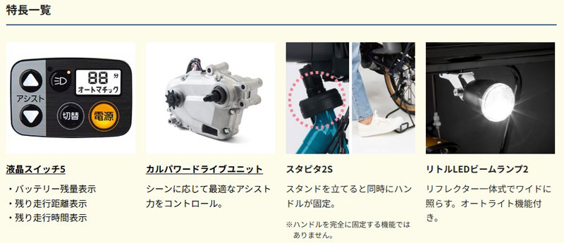 パナソニックの電動アシスト自転車に搭載している「スタピタ2S」は、スタンドを立てると、ハンドルも同時にロックします。