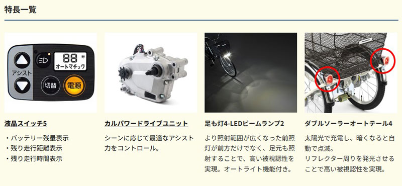 パナソニックの電動アシスト自転車に搭載している「足も灯4-LEDビームランプ2」は、前方だけでなく、足元も明るく照らします。段差や水たまり、マンホールなどの障害物を回避しやすくなりました。周囲の歩行者やドライバーからも認識されやすいよう、前輪をしっかりと照らします。