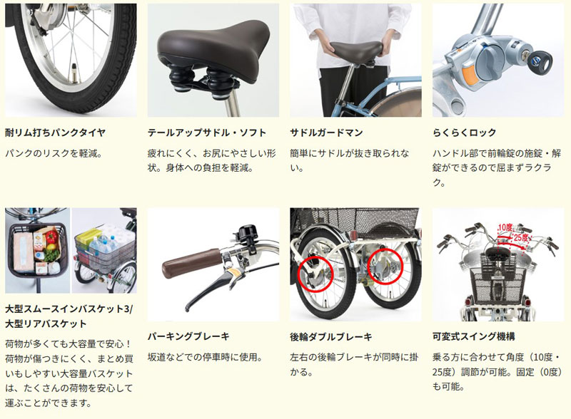 乗り降りしやすく、荷物もたっぷり積める電動アシスト三輪車。おじいちゃん・おばあちゃんへのプレゼントとしてもオススメです♪