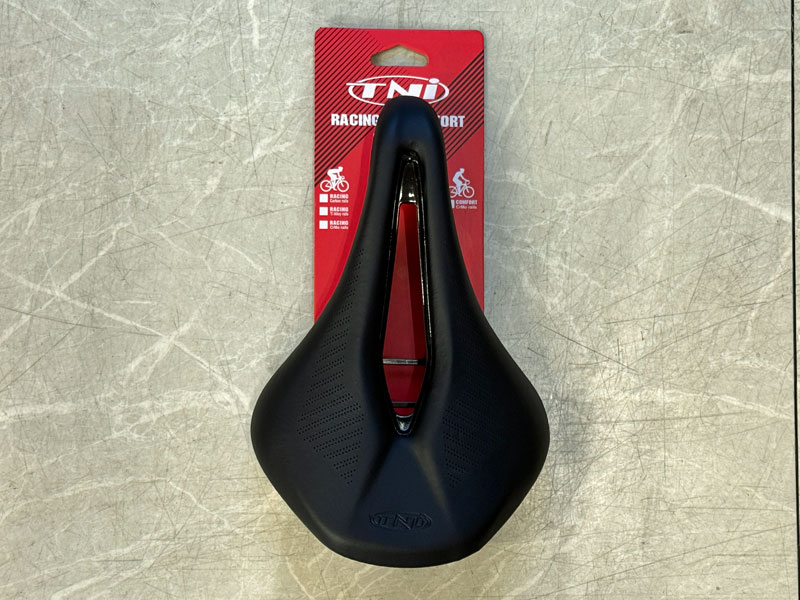TNIがリリースするショートノーズサドルのチタンレールバージョン。穴あきタイプで、しかも幅が広めで圧が分散され快適性の高いサドルです。