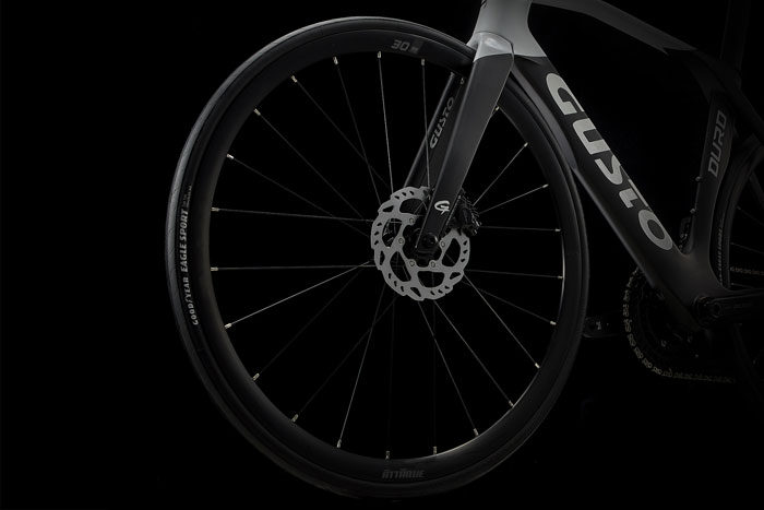 INNEGRA」の丈夫な素材と衝撃を吸収するLATEX、そして日本製の硬いTORAYCA T1000を使い特別に剛性が高く安定したGUSTOの自転車フレームを作るための特許技術を開発しました。 -